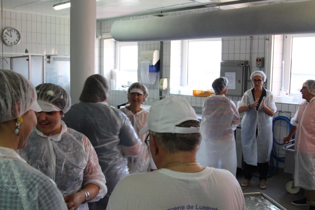 Die Sonne scheint auf den Hof, ein große Holzbank steht vor dem rosa gestrichenen Landhaus. Aus den Stallungen ist das Rumoren der Milchkühre zu hören. Neben dem Stall führt eine Wendeltreppe hoch zur Käserei. Es riecht nach warmer Milch, aus den Rohren fließt schneeweißer Mozarella. Oh, bella Italia. Die Mitarbeiter palavern auf Italienisch, artikulieren wild mit ihren Händen. Sie formen den Mozarellateig zu Bocconcini, Burrata und Scamorza. Der Anblick dieser Produktion versetzt mich und die Teilnehmer des Sommer-Foodcamps in Begeisterung. Köstlichkeiten wie der Mozarella und der Ricotta von Carlo Feyder bringen ein Stück südliches Lebensgefühl direkt auf den Tisch. Nicht über weite Strecken nach Luxemburg transportiert, sondern vor Ort ganz frisch hergestellt. Und es ist nicht irgendein Mozzarella, sondern allerbeste Qualität.