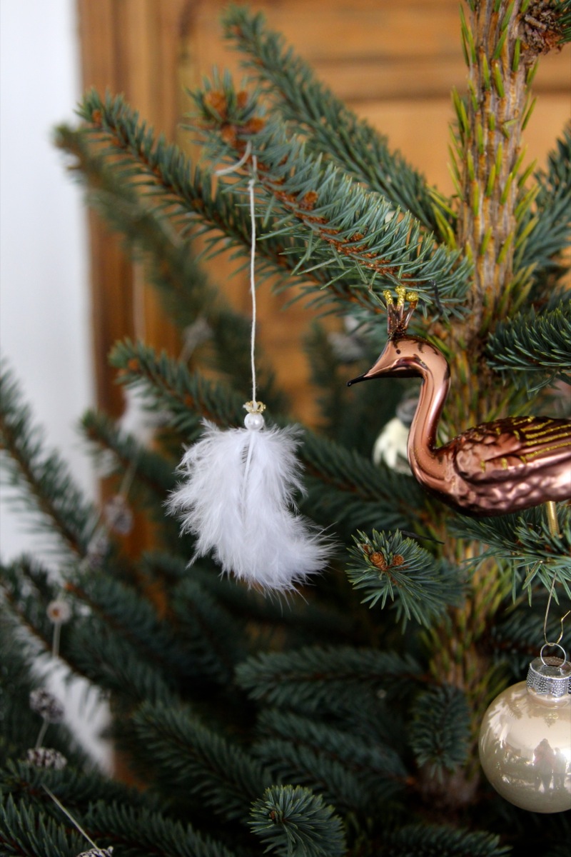 In diesem Jahr habe ich zum ersten Mal auch bei uns in Luxemburg einen Baum aufgestellt. Der Tannenbaumständer stammt noch von meiner luxemburgischen Großmutter! Neben ein paar Vögelchen aus Maastricht und weißen Kugeln besitze ich noch nicht so viel Christbaumschmuck. Aber der darf auch gerne erst nach und nach hinzukommen! Jedes einzelne Stück soll schließlich eine kleine Geschichte erzählen können! Es gibt so viele Möglichkeiten den Baum trotzdem wunderschön und sehr liebevoll zu schmücken! Zum Beispiel mit selbstgebackenen Lebkuchenanhängern. Außerdem habe ich kleine Zapfen mit weißer Farbe bepinselt und mit hellem Faden eine kleine Girlande daraus gewickelt. Für die Zweige habe ich zarte Weihnachtsfeen gebastelt! Sie sind ganz einfach und sehr schnell hergestellt und schauen zauberhaft aus. Wie kleine Elfen!