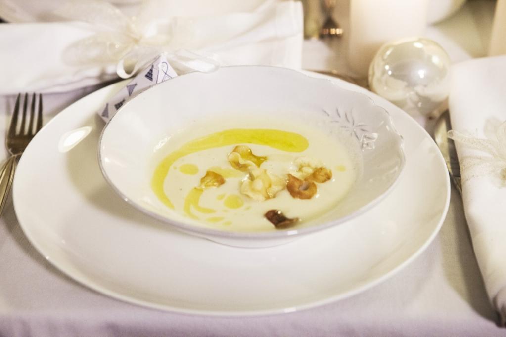 Wer träumt in dieser Zeit nicht von einer weißen Weihnacht! Bei uns im Norden schaut gerade die Sonne zwischen den Nebelwolken hervor, aber von Schnee leider keine Spur! Aber davon lassen wir uns nicht betrüben! Denn in unseren Herzen und in Theresas Küche ist heute weiße Weihnacht! Wir kleiden uns von Kopf bis Fuß in weiß (für die Männer hat das Team vom SisterMAG sogar Fliegen in creme-weiß gestrickt), dekorieren mit weißen Kugeln und selbstgebastelten Schneeflocken aus Papier und wir kochen sogar mit weißen Zutaten! Es gibt Pastinakensuppe, mit Pernod und Parmesan überbackenen Fenchel, Fischfrikadellen mit Aioli, Pannacotta und eine Winter Wonderland Torte! All diese Rezepte lassen sich hervorragend vorbereiten! Die Ideen im Film sollen übrigens nicht nur für das Weihnachtsfest gedacht sein, sondern auch eine Inspirationsquelle sein für eine glamouröse (unkomplizierte!) Silvesterparty oder einfach ein Fest mit Freunden ganz in weiß!
