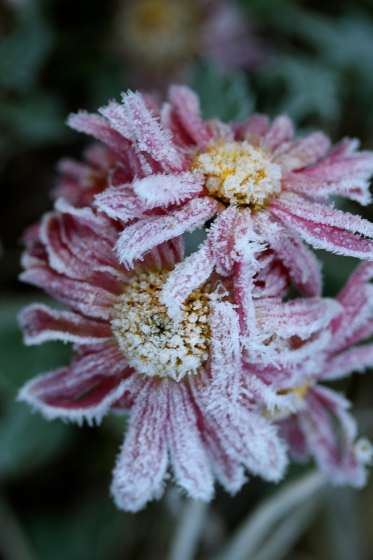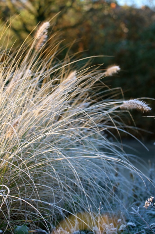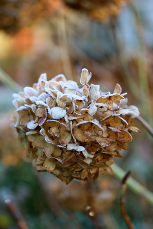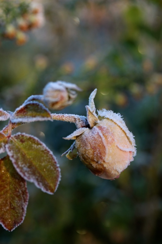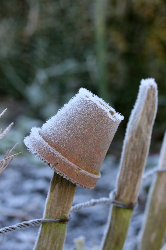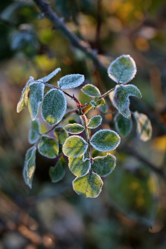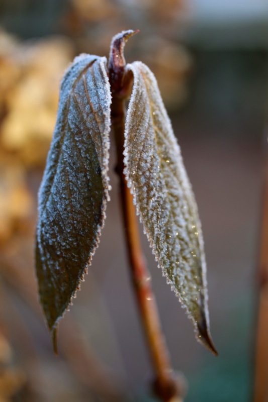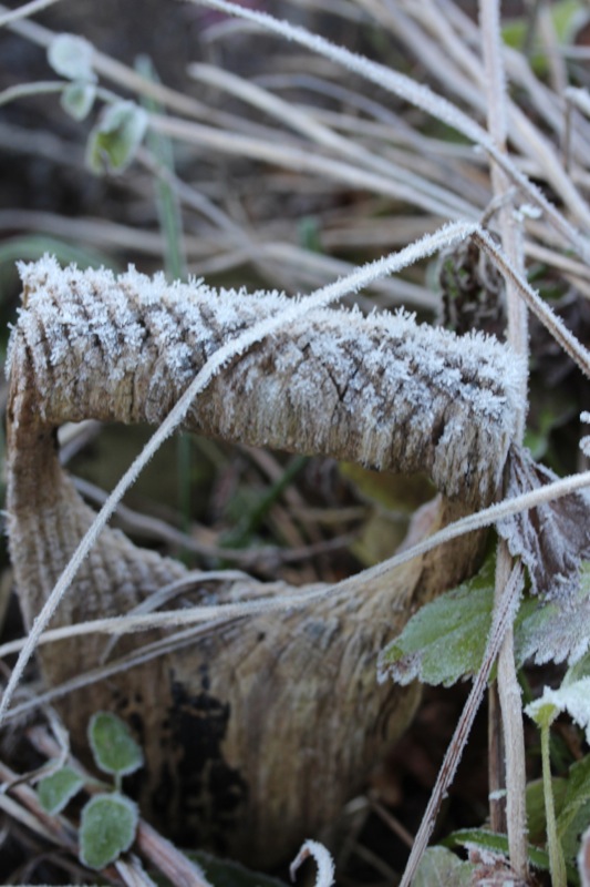 Oh, welche eine Freude! Schon als Kind stürmte ich sofort hinaus, wenn Väterchen Frost den Garten über Nacht winterlich verzaubert hatte. Dill, Salbei, Thymian, Majoran und Mangold, sie alle lagen gestern Morgen unter einer feinen Eisschicht. Schnell die warmen Stiefel anziehen, eine Wolljacke überstreifen und hinaus in den Küchengarten! Der Atem kondensiert in der Luft.