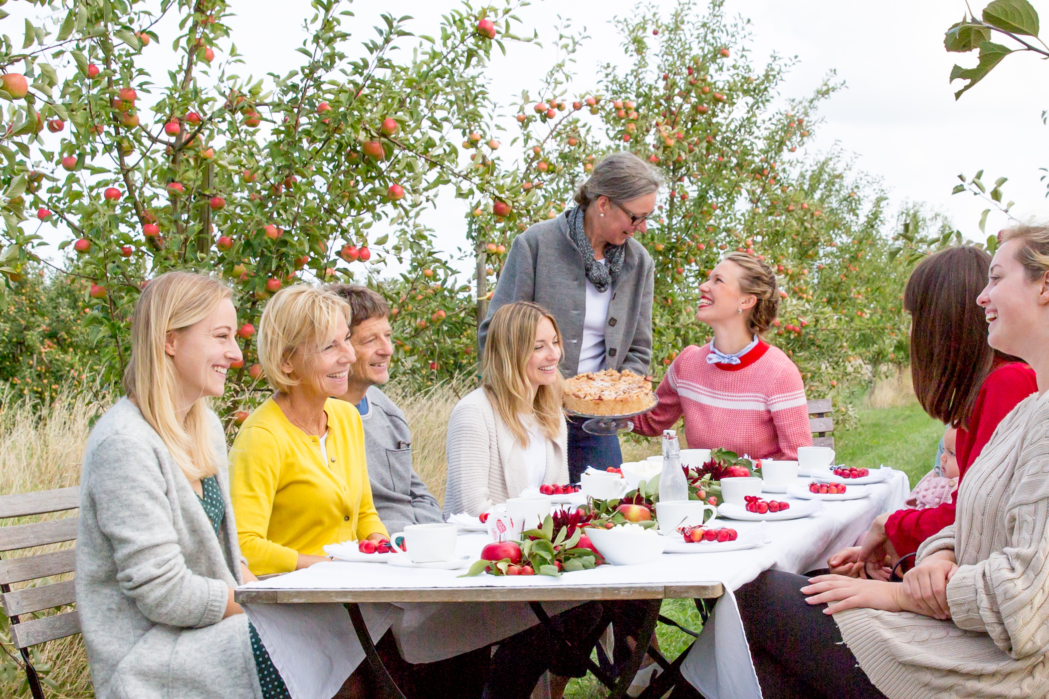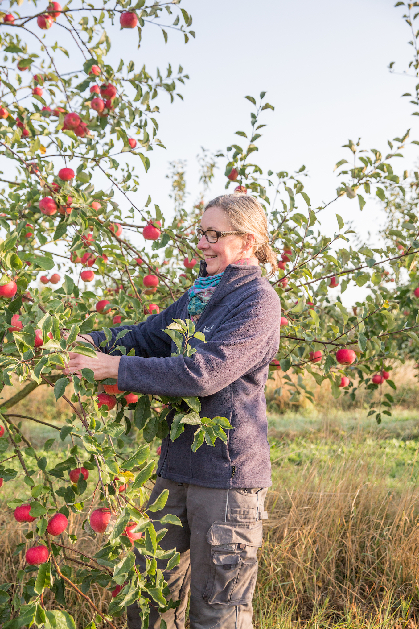 Erntedank ist für mich ein Blick zum Himmel und wieder zurück, verbunden mit der tiefen Liebe zu unseren Bäumen, in den Hof gehen zu können und die Äpfel sortenrein für den Kuchen zu pflücken. Das ist ein ganz großes Glück. Erntedank hat für mich auch mit Demut zu tun, was gebe ich zurück? Genügend? Achte ich auf den Boden, die vielen Lebewesen, das Wasser, das Umfeld?