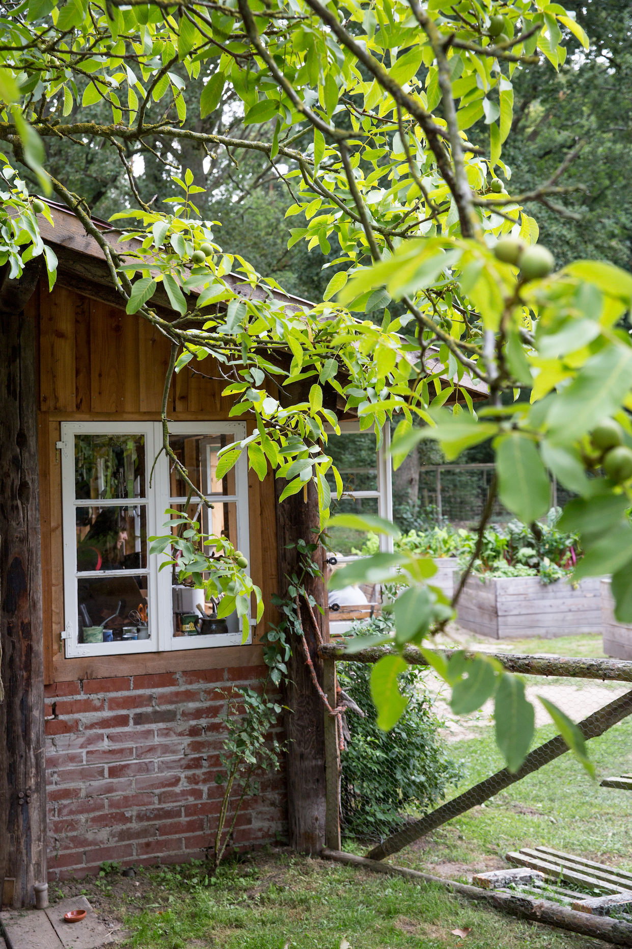 Ja, diese Außenküche ist einfach total charmant. Das Gebäude war früher ein Geräteschuppen und mein Vater hat dann diesen Gedanken dort umgesetzt und eine kleine Küche eingebaut. Es ist schon wirklich wie aus einem Bilderbuch, wenn man dort kocht. Dir fehlt etwas und du holst es einfach aus dem Beet. Du siehst durch die alten Sprossenfenster wie die Dinge draußen wachsen und kannst sie drinnen verarbeiten. Da steckt so viel Herz drin. Oft ist es dann auch mein Vater der dort kocht. Diese Atmosphäre lädt den Akku wieder auf. Wenn man seine harten Zeiten in der Stadt hat und darf dann dort sitzen und sich etwas leckeres zu Essen gönnen und quasi durch dieses Bilderbuch des Gartens blättern, das ist einfach total cool! Und ich bin da sehr dankbar für, dass ich diese Chance habe das nutzen zu dürfen!