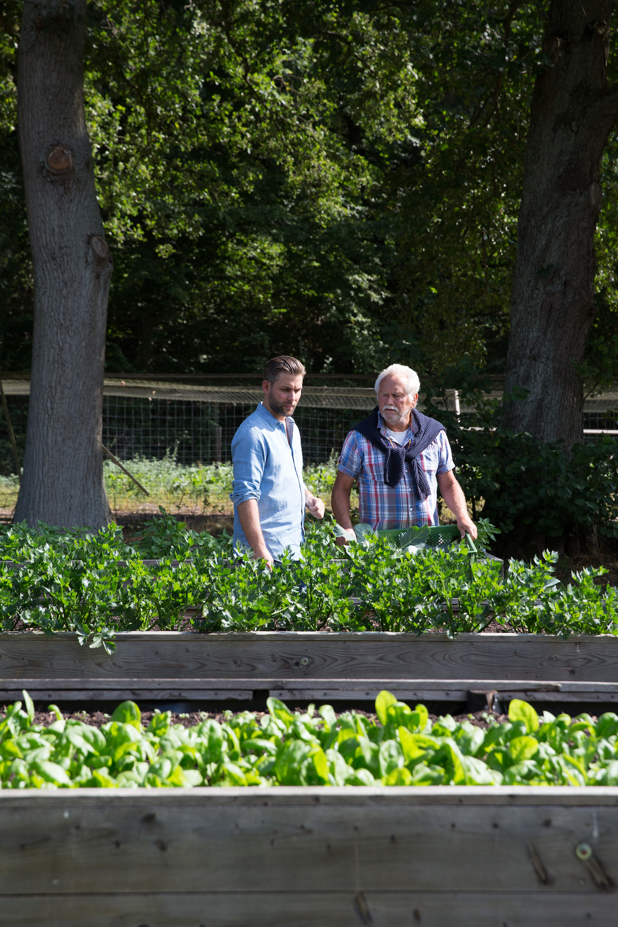 Wir liefern natürlich alles, was irgendwo auf dem Kastanienhof wächst und nutzbar ist, in die Restaurants. Das ist nicht ganz einfach und hat sich erst langsam entwickelt. Die normalerweise von der Landwirtschaft gelieferte absolute Rohware, also dreckige Kräuter oder Möhren direkt aus der Erde gezogen, können wir nur schwer gebrauchen. Das Putzen ist für die Köche ein großer Mehraufwand, auch wenn die Freude über die frischen Produkte groß ist. Wir haben dann eine kleine Vorbereitungsküche auf dem Hof gebaut, wo das Gemüse feinsäuberlich gewaschen und die Kräuter gebunden werden. Das ist wirklich ein cooles Konzept geworden und seit dem funktioniert es auch sehr sehr gut in den Küchen. Dadurch, dass wir regelmäßig Teamevents draußen auf dem Hof machen, konnten wir die Mitarbeiter auch sehr gut dafür sensibilisieren, dass das ein ganz besonderes Produkt ist und eben auch einen ganz besonderen Umgang verdient hat. Auch in dem Sinne, dass nichts weggeschmisschen wird. Vor kurzem haben wir unsere zwei Schweine geschlachtet und an die Läden verkauft. Die Mitarbeiter kannten die zwei und es zeigte sich eine ganz andere Affinität damit umzugehen und dafür zu sorgen, dass sie ordentlich verarbeitet werden.