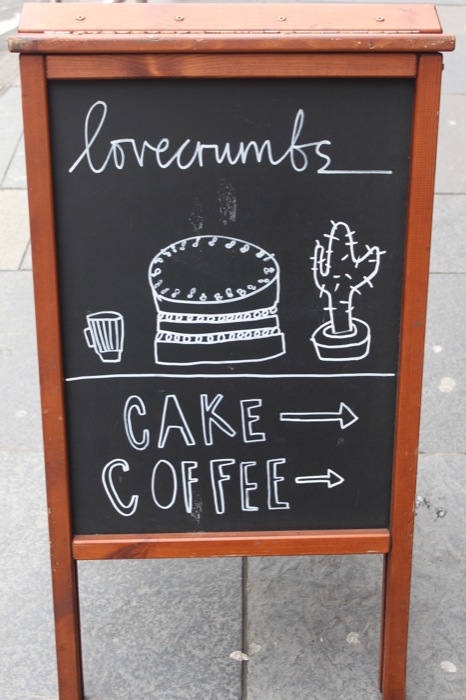 Lovecrumbs! Dies ist ein Ort für Kuchenliebhaber! Bäckerin Rachel Morgan zaubert jeden Tag die wunderbarsten Kuchen mit den allerfeinsten Zutaten. Ihre Liebe geht hier wahrlich durch den Magen! Wie wäre es zum Beispiel mit einem Stück Rose & Raspberry Cake oder Violet & Lime Cake? Ein Kleiderschrank gefüllt mit süßen Köstlichkeiten! Bei diesem Anblick fällt die Entscheidung schwer! Am liebsten von jedem etwas! Die Wahl fällt schließlich auf Hummingbird. Der kleine Kolibri ist so zart und exotisch wie der gleichnamige Kuchen. Denn hinter einem Hummingbird Cake verbirgt sich ein Bananen-Ananas-Walnuss-Gewürzkuchen-Traum mit Frischkäse-Frosting! Himmlisch oder? Der Teig ist unglaublich saftig und locker und nicht so süß wie erwartet. Jede einzelne Zutat zergeht wie Balsam auf der Zunge. Und so schwelge ich noch eine Weile in meinem Kuchen-Traum, bis ich plötzlich vor Schreck aufspringe! Ungläubig starre ich in meine Kaffeetasse. Da sitzt doch tatsächlich eine braune Kröte im Kaffee!!! Holly, die sympathische Bedienung hinter der Kuchenthecke, hat mich wohlwissend beobachtet. Als sich unsere Blicke treffen, brechen wir beide in schallendes Gelächter aus. Das ist britischer Humor, wie ich ihn liebe!
