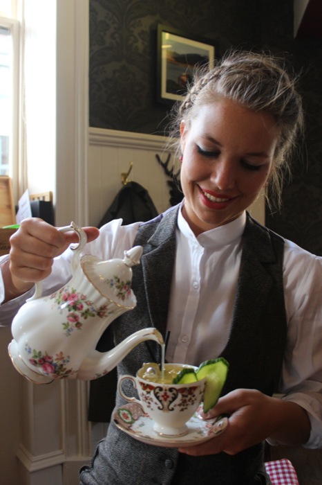 Und wie beginnt man in Edinburgh den Abend? Of course with a tea cup! Im Roseleaf werden die Cocktails in Teekannen serviert. Wir bestellen Rose Garden for two! Das ist Hendricks laced beverage with freshly juiced apples, rose liqueur & cucumber kiss!