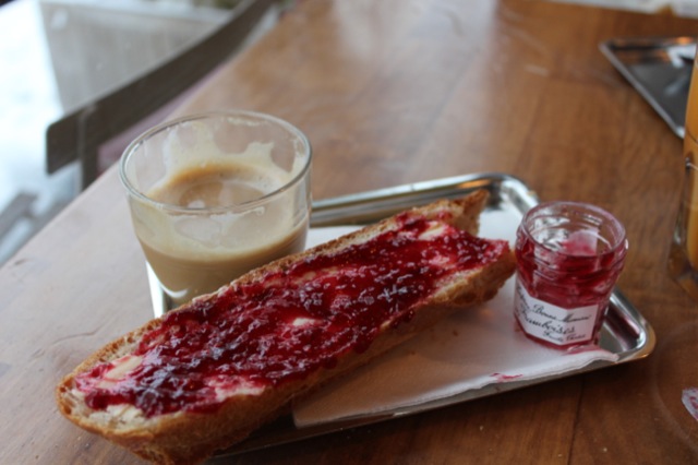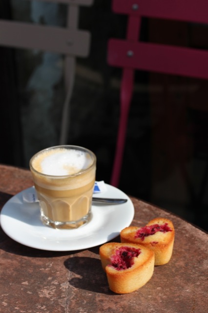 Um 13 Uhr treffen wir uns zum geselligen Brunch im Café Léa. Dieser Ort steckt für mich voller wunderschöner Erinnerungen! Zum Beispiel die bunten Stühle draußen vor den Fenstern, sie erzählen von lauen, amüsanten Sommerabenden mit Feunden, von nicht enden wollenden Gesprächen und Blicken unter den Sternen. Das Café Léa hat sich nicht verändert, es ist ein vertrauter Ort geblieben. Und so bestelle ich traditionell einen Petit Café crème mit einer kleinen Kakaomandel und einen Salade César. Einfach und köstlich!