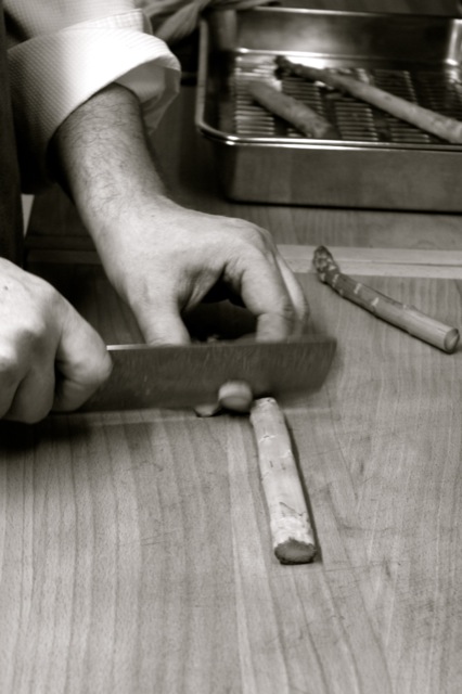 - Den grünen Spargel putzen und die holzigen Enden entfernen.