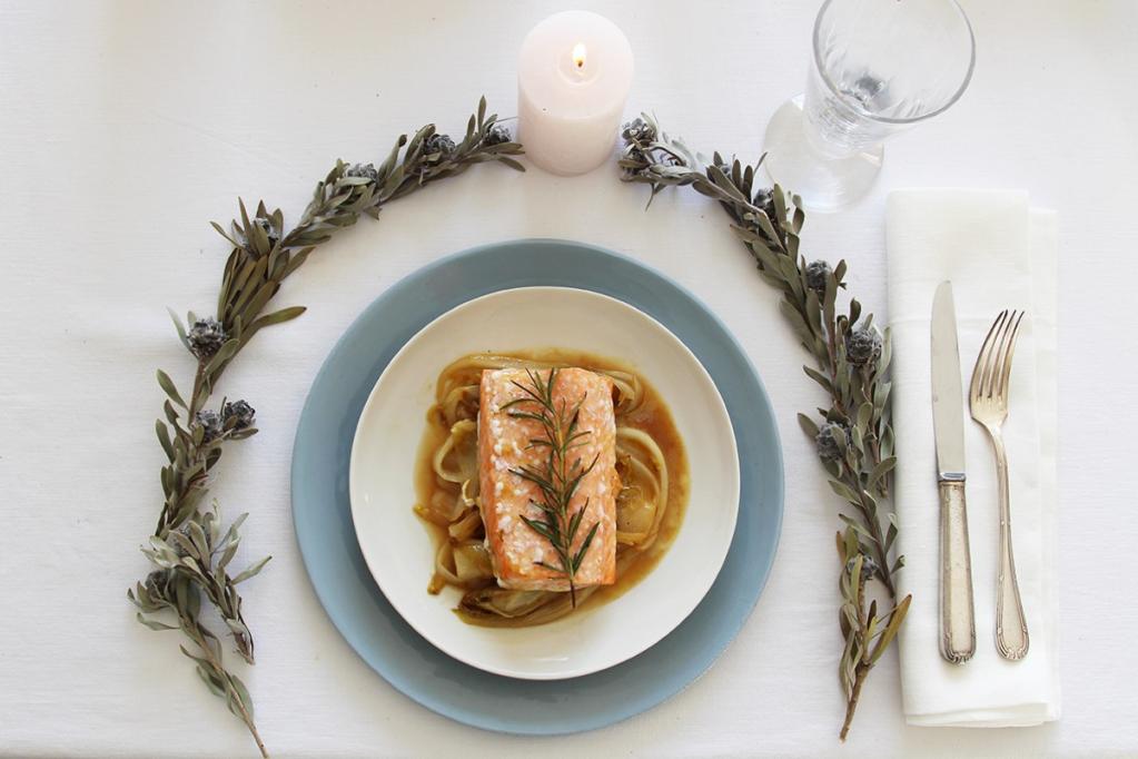 An den Tagen zwischen Heiligabend und Neujahr versammelt sich oft die ganze Familie um den großen Tisch. Während es am 1. Weihnachtsfeiertag meist einen großen Braten gibt, freut man sich an den anderen Tagen auf Gerichte, die etwas leichter daherkommen und trotzdem festlich schmecken. Der Lachs auf karamellisiertem Orangen-Chicorée ist z.B. solch ein Gericht! Er ist schnell zubereitet und ermöglicht so viel gemeinsame, wertvolle Zeit mit den Liebsten!