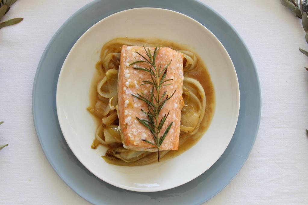 Lachsrückenfilet auf karamellisiertem Orangen-Chicorée