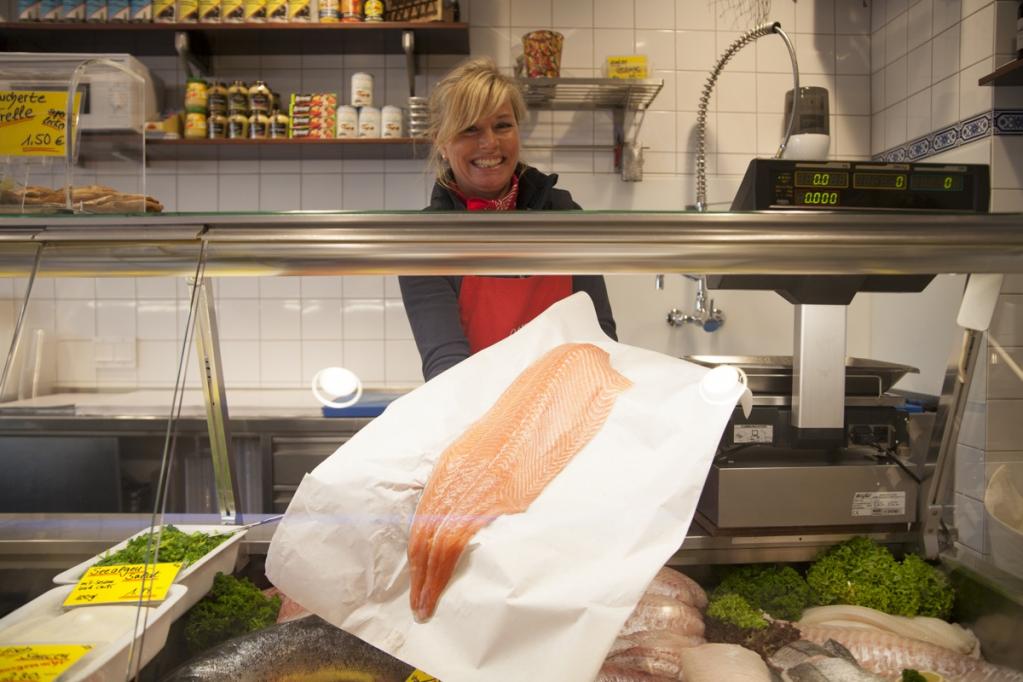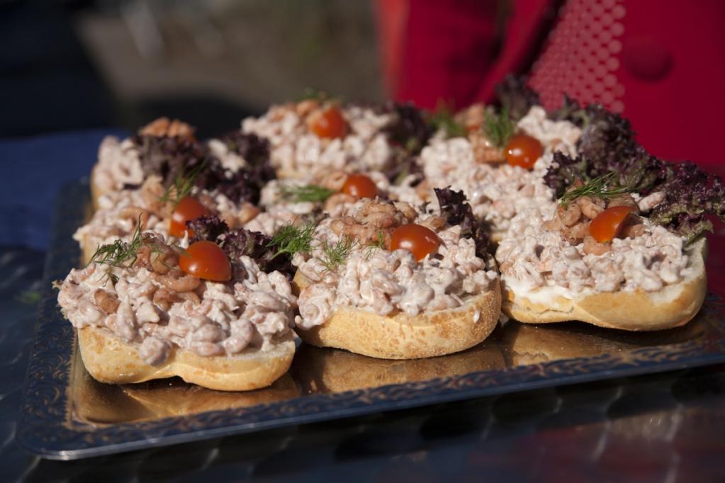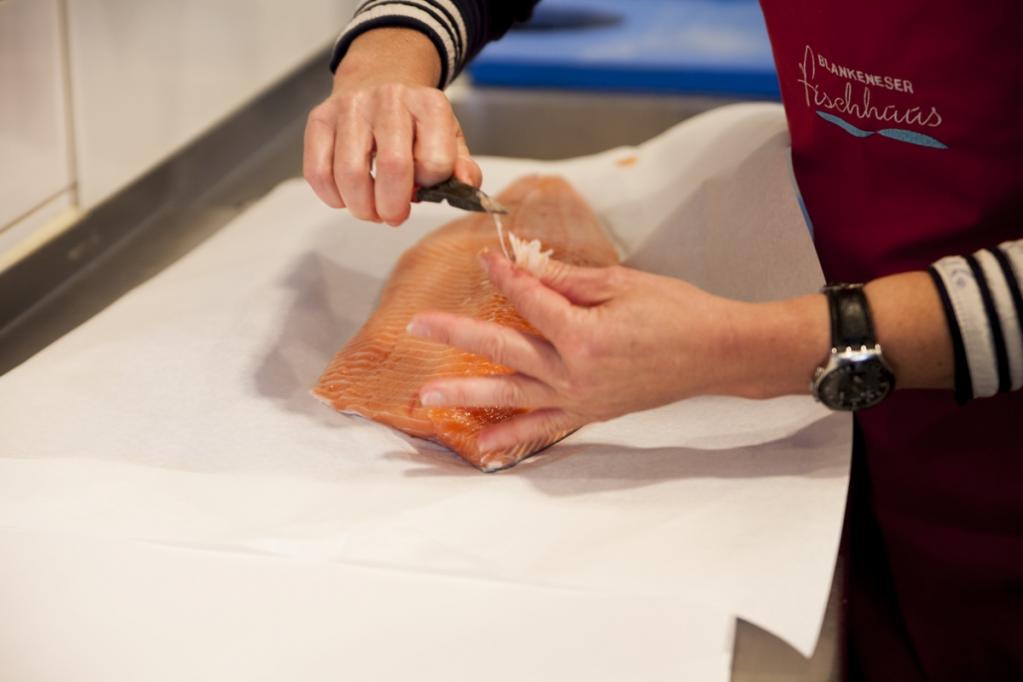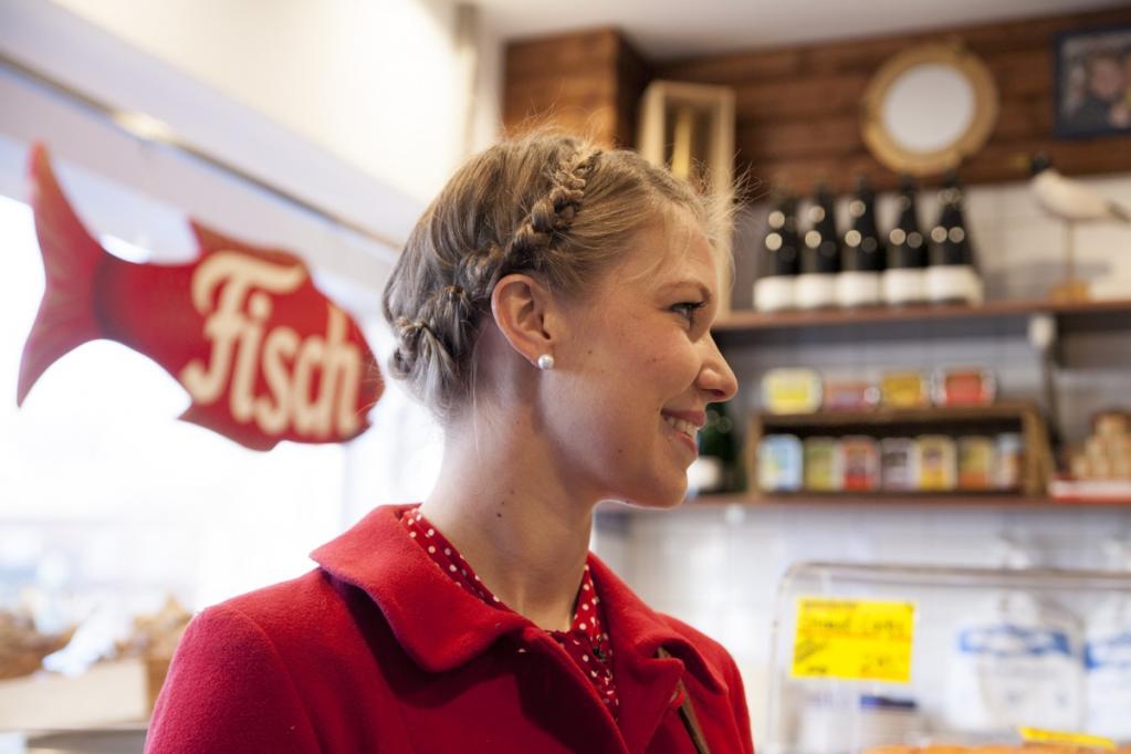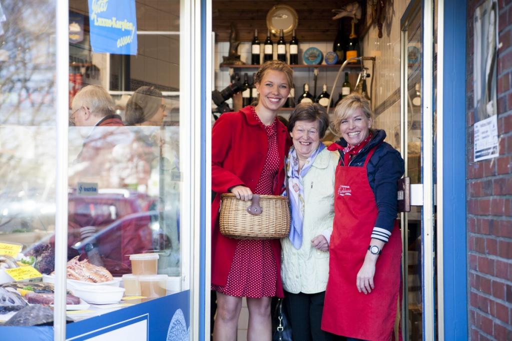 Es war ein unvergesslicher Drehtag für mich mit so vielen Situationen, in denen ich mir heimlich gewünscht habe: Könnten wir diesen Moment bitte kurz festhalten? Er erfüllt mich gerade so voller Glück!! Glück ist für mich, wenn ich ein Geschäft betrete und unmittelbar die Leidenschaft der Inhaber für ihr Handwerk spüre. Das ist für mich zum Beispiel die Auswahl besonderer Produkte in einer unübertrefflichen Qualität und Frische. Da komme ich aus dem Strahlen gar nicht mehr heraus! Das Fischhuus von Herr und Frau Gideon ist solch ein Geschäft. Und zum Glück wissen Dorle und ich bereits, was wir kaufen möchten. Sonst könnte ich mich hier nur schwer entscheiden! Beschenkt ist hier, wer in unmittelbarer Nähe wohnt und regelmäßig vorbeischauen kann. Für unseren Graved Lachs wählen wir eine ganze Lachsseite vom schottischen Wildlachs. Ist das Filet nicht der absolute Wahnsinn? Frau Gideon zieht noch die letzten Gräten heraus, dann verschwindet der Lachs in meinen Fischkorb. Als wir uns gerade verabschieden wollen, kommt Herr Gideon mit einem Tablett frisch zubereiteter Krabbenbrötchen für das ganze Team die Treppe herauf. Die Krabben bekommt er von einem kleinen Nordseefischer und langjährigen Produzenten der Familie. "Ich stelle euch den Tisch herüber in die Sonne!" Es ist das beste Krabbenbrötchen meines Lebens! Die ersten wärmenden Frühlingssonnenstahlen im Gesicht spüren, die Augen schließen und dabei genussvoll in solch ein frisches Krabbenbrötchen beißen, auch das bedeutet für mich Glück.