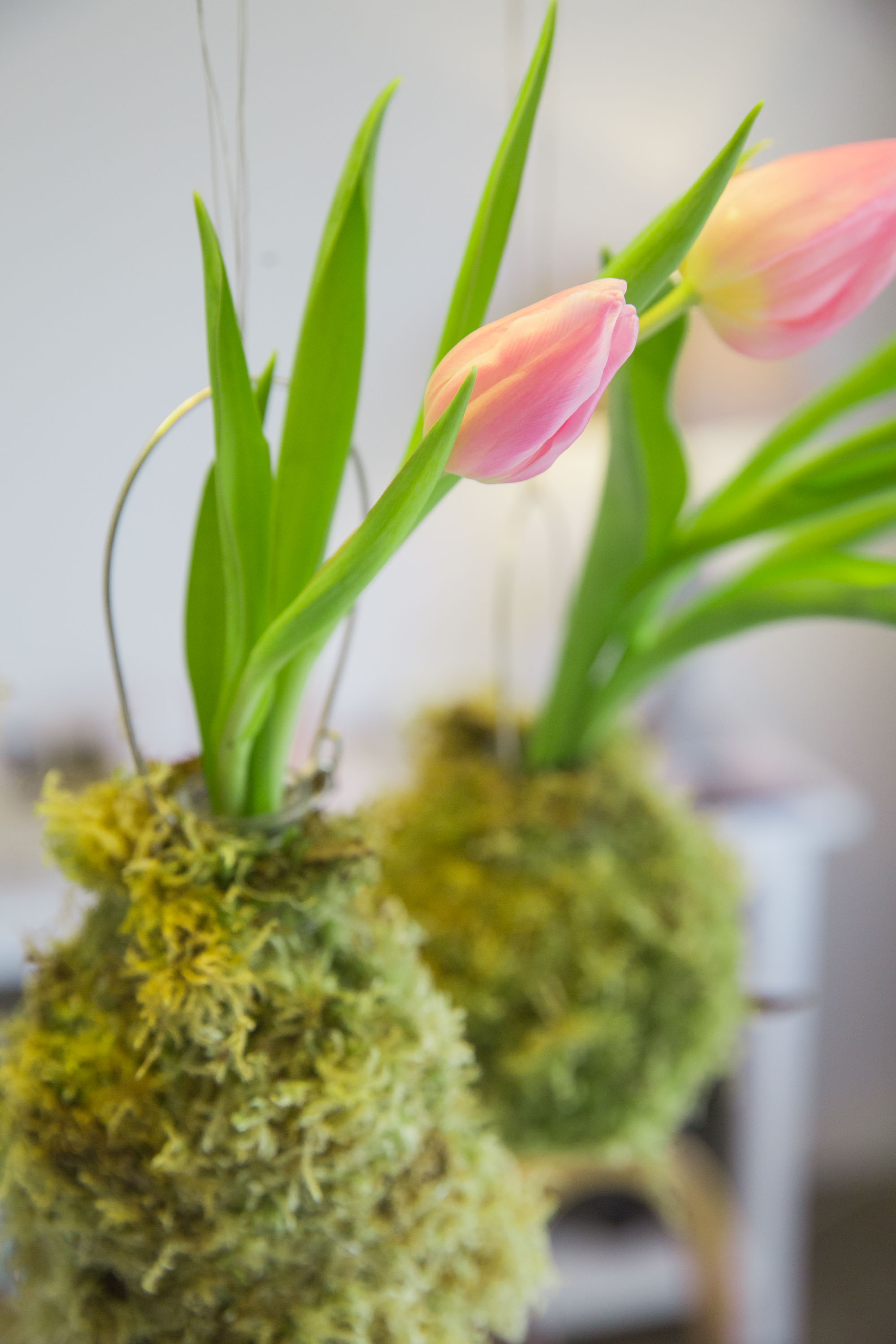 5: Frische Tulpen in selbstgebastelten Vasen aus Moos