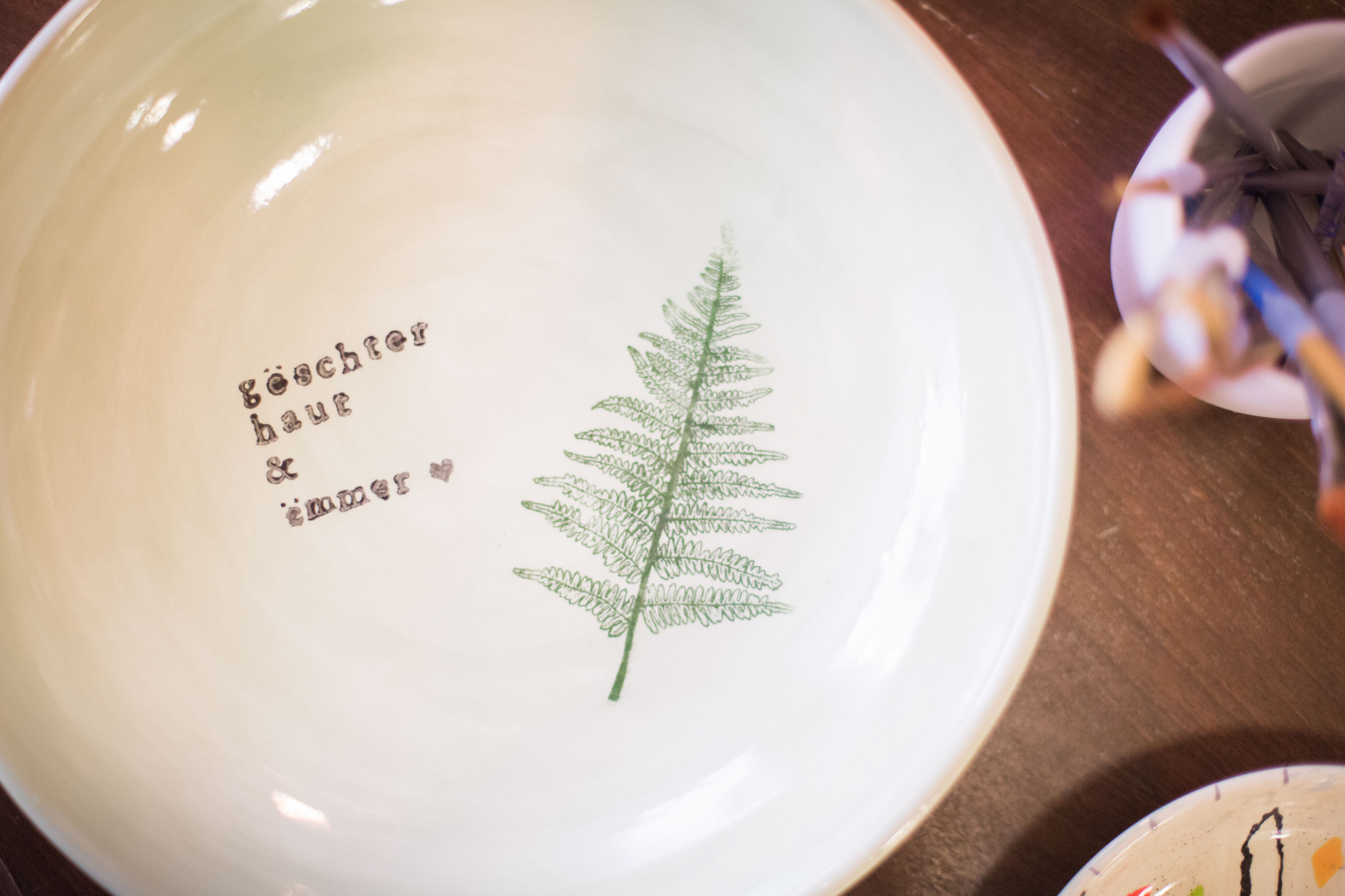 Wenn im Alltag und draußen in den Straßen viel Trubel herrscht ist, dann ist es wie Balsam für die Seele in das kleine dänische Atelier Nordic Stella einzukehren. Dort gibt es die Möglichkeit aus der Holzvitrine eine vorgefertigte Keramik auszuwählen und selbst zu bemalen. Die Atmosphäre ist warm und herzlich, auf dem Tisch brennen Kerzen, ein paar Zweige aus dem Wald schmücken eine Vase. Genauso, wie ich es liebe! Hier nehme ich mir ganz bewusst eine kreative Auszeit für mich. Beim Konzentrieren auf das Bemalen bin ich ganz im hier und jetzt, es ist wie Yoga für den Kopf. Das Bemalen erfordert nicht viel Talent. Es gibt zauberhafte Vorlagen von Tieren und Blättern sowie eine Vielzahl von unterschiedlichen Stempeln. Ich entscheide mich für eine Müslischale in zartem grün und bedrucke sie mit einer Schwalbe, als Erinnerung für diesen wunderschönen Glücksmoment in der Rue du Nord. Die Preise verstehen sich inkl. glasieren und brennen und beginnen bei 18€. Zehn Tage später kann das eigene Kunstwerk abgeholt werden.