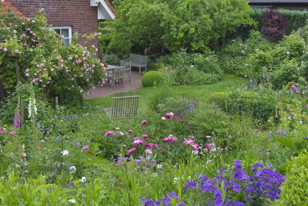Dort, wo sich das Alte Land verabschiedet und die Geest beginnt ist unser Garten zu finden. Von den Baumgärtners würde man vielleicht eher einen Garten mit vielen Bäumen erwarten, aber es ist ein sehr üppiger Blumengarten. Die Stauden kommen aus Cornwall und der Normandie, die historischen Rosen aus einer kleinen Rosenbaumschule in Schleswig-Holstein. Vielleicht kommt ihr ja sogar mit dem Fahrrad. Die Elbe ist nicht so weit. Der nächste Bahnhof ( Horneburg) ist 3 km entfernt. Willkommen Greenfingers!