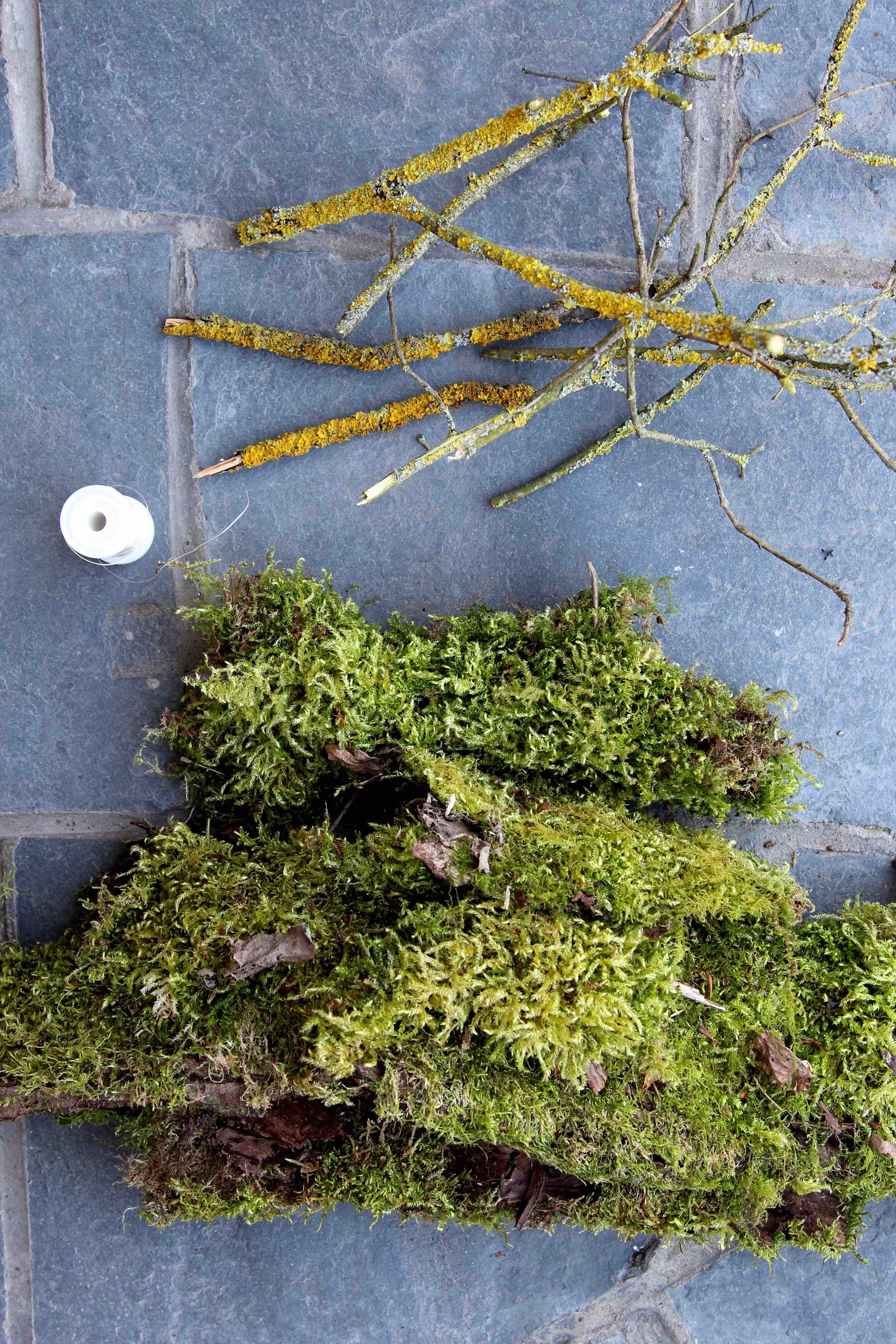 Rund um den alten Apfelbaum wächst reichlich Moos und in der Hecke finde ich mit Flechten überzogene wundervolle Zweige. Sie sind im Frühling traumhaft schön zum Dekorieren!