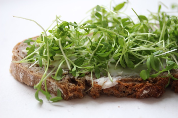 In der kurpfälzischen Provinz hat die Kressesalat-Saison begonnen! In großen geflochtenen Körben türmen sich auf dem Wochenmarkt nun wieder in hohen Bergen die zarten Halme der Kresse. "100 g für 1 Euro" ist mit Kreide auf den schwarzen Schiefertafeln geschrieben. Ich muss beim Anblick des Salates nicht lange überlegen, was es zu einem späten Frühstück in meiner Küche geben wird. Die Frühlingsgelüste in meinem Bauch wünschen sich eine Kressevariation, wie sie purer im Geschmack nicht sein könnte: Ein Ei im Glas mit Kresse und Zitronenschale, begleitet von einem scharfen Kressesalat, mariniert mit einer süßen Salatsauce aus Olivenöl, Agavensirup und einem Hauch Zitrone. Dazu gibt es eine Scheibe frisch gebackenes Krustenbrot, bestrichen mit salziger Butter aus Frankreich und obendrauf natürlich ganz viel Kresse!