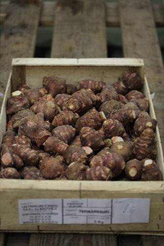 Auf meiner Einkaufliste steht heute Topinambur. Die Blüte dieser essbaren Knollenpflanze ähnelt einer gelb leuchtenden Sonnenblume. Die aromatische Knolle der Topinamburpflanze wird oft als „Erdapfel“ oder sogar als „Erdartischocke“ bezeichnet, weil sie sich geschmacklich dem Artischockenherz annähert. Als Gemüse ist Topinambur heute fast in Vergessenheit geraten. Dabei enthält die Frucht viele wertvolle Inhaltsstoffe wie Vitamin B, Magnesium, Eisen und Kalium. Seit meiner Entdeckung dieser Knolle möchte ich sie in meiner Küche nicht mehr missen. Und ganz besonders in der Kombination mit Kartoffeln in einem Püree!