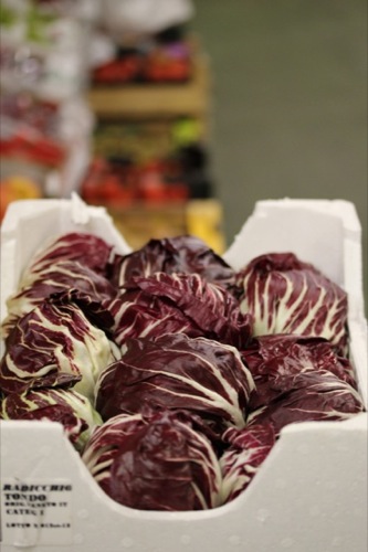 Ich ziehe mir den Schal etwas enger und schiebe den schwergelenkigen Einkaufswagen schnellen Schrittes in die Richtung meines Herzstücks der Provençale: die Obst- und Gemüseabteilung! Lange Kunststoffbänder hängen vor dem Eingang, damit die Kälte nicht entweichen kann. Ein begehbarer Kühlschrank! Mit strahlenden Kinderaugen schreite ich vorbei an all den ausgefallenen Salatsorten, Pilzen, bunten Rüben und vergessenen Gemüsesorten. Es ist wie in 1001 Gemüse. Ein Ort zum Schwärmen und die Zeit vergessen, bis einen die kalten Füße zur Entscheidung zwingen!