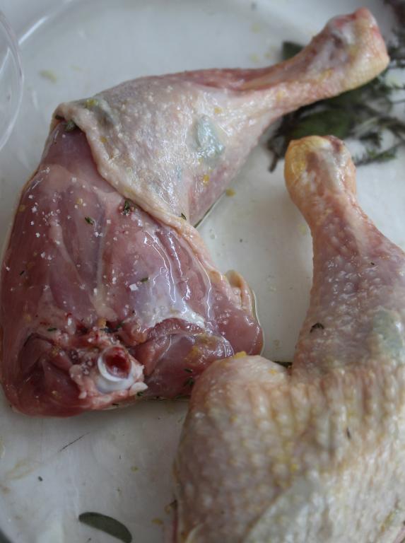 Für das Salbei – Zitronen – Huhn kaufe ich beim Biometzger noch „deux Cuisses de Poulet“, zwei Schlegel vom glücklichen Huhn aus Bayern.