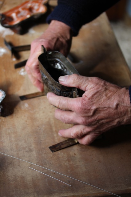 Doch bevor es soweit ist, müssen die Formen mit Butter gefettet und leicht bemehlt werden. Traditionell kümmert sich Großmutter um die Teigzubereitung und Großvater eilt hinaus in die Werkstatt, um Draht und Zange zu holen.